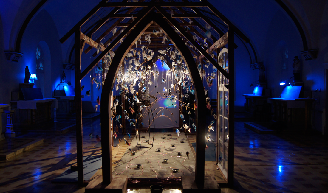 Artiste multidisciplinaire, Isabelle Clermont This link will open in a new window crée des univers immersifs qui ont la particularité d’offrir une polyphonie des sens à travers des espaces de recueillement, intimes et sacrés. Sa démarche se fonde en grande partie sur la quête d’harmonie et de recherche spirituelle, de transcendance et de transgression à travers l’état de présence. Elle est du mouvement de « l’art total », se caractérisant par l’utilisation simultanée de nombreux médiums et disciplines artistiques ainsi que par la portée symbolique, philosophique ou métaphysique.