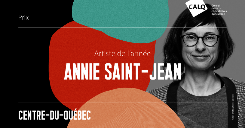 Le Conseil des arts et des lettres du Québec est heureux de décerner le Prix du CALQ – Artiste de l’année au Centre-du-Québec à l’artiste en arts visuels Annie Saint-Jean. Ce prix, assorti d’un montant de 10 000 $, lui a été remis lors de la 17e édition du GalArt, une cérémonie organisée par Culture Centre-du-Québec.