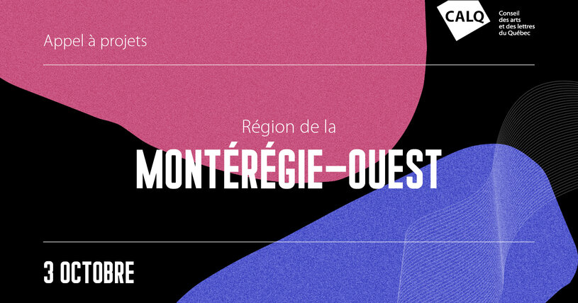 Cet appel découle de l’Entente de partenariat territorial pour les arts et les lettres en Montérégie. Les artistes, les écrivaines et les écrivains professionnels ainsi que les organismes dont l’adresse principale se situe sur le territoire de l’un des partenaires du secteur de la Montérégie-Ouest ont jusqu’au 3 octobre 2024 pour déposer leurs projets auprès du CALQ.