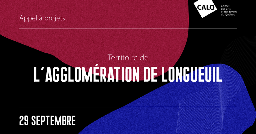 Le Conseil des arts et des lettres du Québec, le ministère des Affaires municipales et de l’Habitation, la Ville de Longueuil, la Table de concertation régionale de la Montérégie, en collaboration avec Culture Montérégie, lancent le troisième appel de projets du Programme de partenariat territorial de l’agglomération de Longueuil. Cet appel découle de l’Entente de partenariat territorial pour les arts et les lettres en Montérégie. Les artistes et organismes résidant sur le territoire de l’agglomération, qui comprend les villes de Longueuil, Boucherville, Brossard, Saint-Bruno-de-Montarville et Saint-Lambert, ont jusqu’au 29 septembre 2022 pour déposer leurs projets auprès du Conseil des arts et des lettres du Québec.