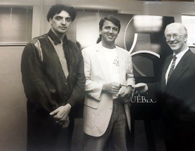 1994: le premier chèque de subvention émis par le Conseil des art et des lettres du Québec est remis par son PDG, Guy Morin (à dr.), au directeur artistique du Groupe Danse Partout, Luc Tremblay, accompagné du président de l'organisme, Claude Gingras.