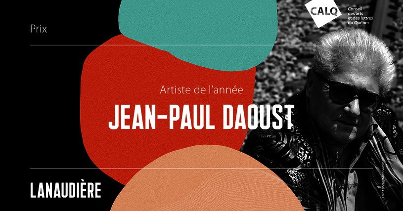 Le Conseil des arts et des lettres du Québec est heureux de décerner le Prix du CALQ – Artiste de l’année dans Lanaudière au poèteJean-Paul Daoust. Ce prix, assorti d’un montant de 10 000 $, lui a été remis par Anne-Marie Jean, présidente-directrice générale du Conseil lors d’un gala virtuel produit par Culture Lanaudière.