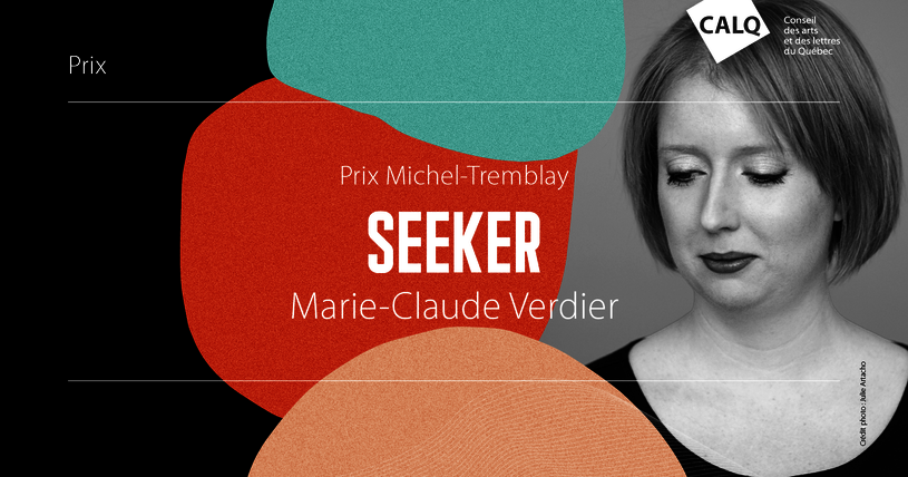Le Conseil des arts et des lettres du Québec est heureux de remettre un montant de 10 000 $ à Marie-Claude Verdier, lauréate du prix Michel-Tremblay, pour son texte dramatique Seeker. Cette récompense lui a été remise par Anne-Marie Jean, présidente-directrice générale du Conseil, lors de la cérémonie de remise des prix de la Fondation du Centre des auteurs dramatiques, à l’Atrium des Grands Ballets, à Montréal.