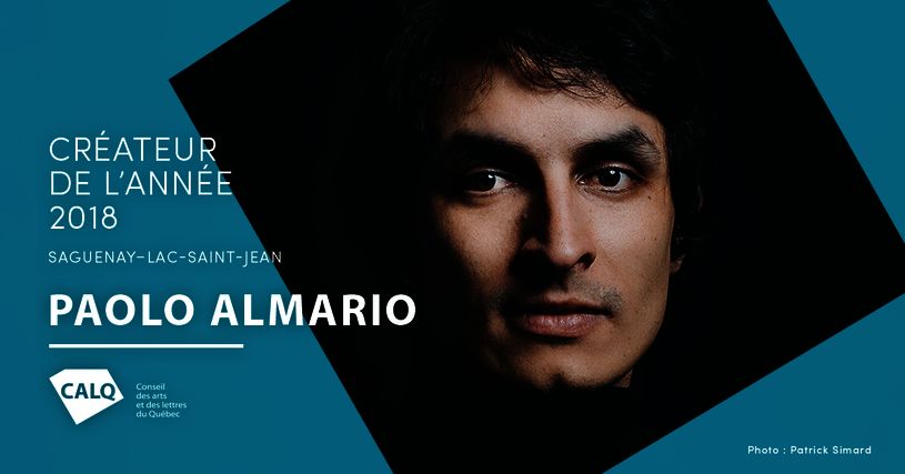 Le Conseil des arts et des lettres du Québec est heureux de décerner le Prix du CALQ – Créateur de l’année au Saguenay–Lac-Saint-Jean 2018 à l’artiste Paolo Almario.