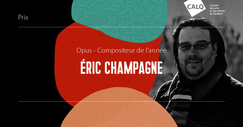 Le Conseil des arts et des lettres du Québec (CALQ) est heureux de s’associer au Conseil québécois de la musique (CQM) en remettant un montant de 10 000 $ à Éric Champagne, lauréat du prix Opus du Compositeur de l’année. Cette récompense lui a été remise aujourd’hui par Véronique Fontaine, directrice du soutien aux organismes de création et de production au CALQ, lors du gala des prix Opus à la salle Bourgie du Musée des beaux-arts de Montréal.