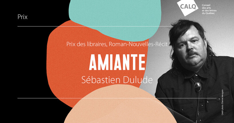 Le Conseil des arts et des lettres du Québec (CALQ) est heureux de remettre un montant de 10 000 $ à l’écrivain Sébastien Dulude, lauréat du Prix des libraires du Québec 2025 dans la catégorie Roman-Nouvelles-Récit (Québec), pour son livre Amiante, paru aux Éditions La Peuplade Ce lien s'ouvrira dans une nouvelle fenêtre. Le prix lui a été remis hier soir par André Racette, directeur du soutien à la diffusion et au rayonnement international au CALQ, à l’occasion du gala du Prix des libraires du Québec 2025, organisé par l’Association des libraires du Québec, au cabaret Lion d’Or, à Montréal.