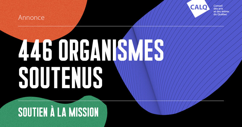 Le Conseil des arts et des lettres du Québec (CALQ) annonce un soutien financier de près de 104 M$ pour 2024-2025 à 446 organismes culturels œuvrant sur l’ensemble du territoire québécois et ayant déposé une demande au programme « Soutien à la mission » afin de leur permettre de réaliser leur mandat.