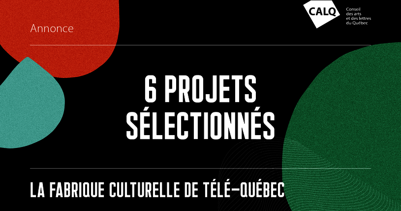 Le Conseil des arts et des lettres du Québec et La Fabrique culturelle, plateforme numérique de Télé-Québec sont heureux d’annoncer un soutien de 200 670 $ à six artistes professionnel(le)s pour la réalisation des projets sélectionnés dans le cadre de la mesure Création de contenus numériques originaux pour La Fabrique culturelle.