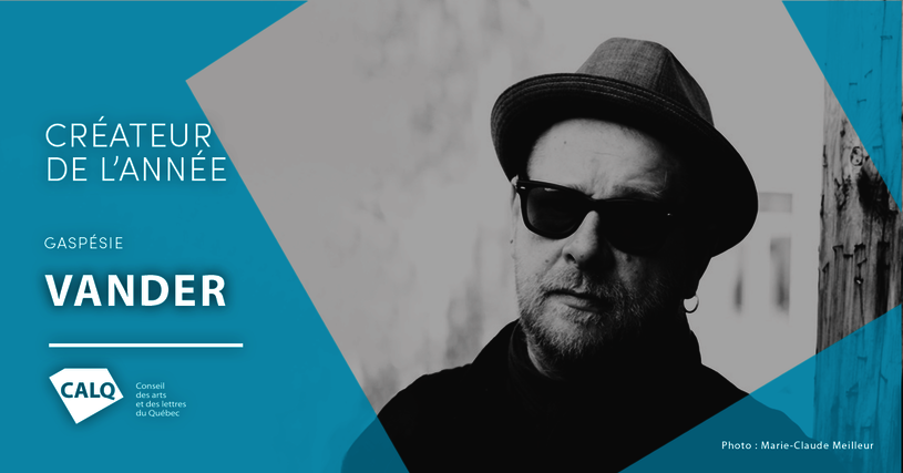 Le Conseil des arts et des lettres du Québec est heureux de décerner le Prix du CALQ – Créateur de l’année à André Vanderbiest, alias Vander. Ce prix, assorti d’un montant de 5 000 $, lui a été remis par Céline Lavallée, directrice du soutien aux artistes, aux communautés et à l’action régionale du Conseil, lors de l’assemblée générale annuelle de Culture Gaspésie Ce lien s'ouvrira dans une nouvelle fenêtre.