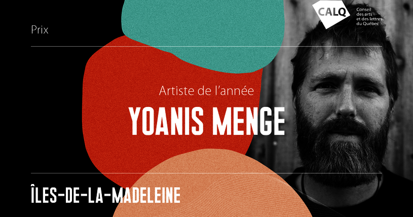 Le Conseil des arts et des lettres du Québec est heureux de décerner le Prix du CALQ – Artiste de l’année aux Îles-de-la-Madeleine à Yoanis Menge. Ce prix, assorti d’un montant de 10 000 $, a été dévoilé par le biais d’une capsule vidéo sur la page Facebook d’Arrimage, Corporation culturelle des Îles-de-la-Madeleine.