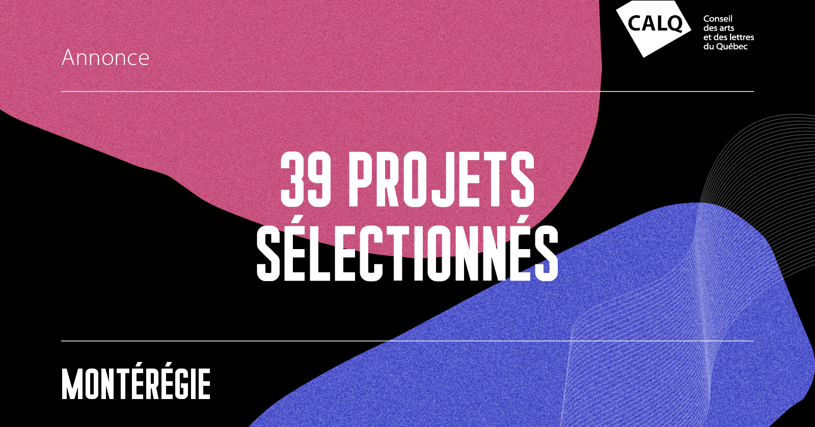 Le CALQ et ses partenaires annoncent un soutien de 695 000 $ à 29 artistes et 9 organismes pour 39 projets artistiques en Montérégie.