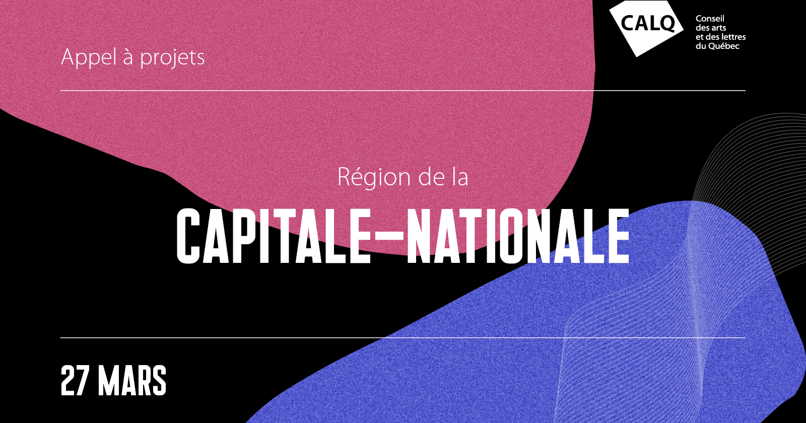 Le CALQ et ses partenaires annoncent un appel à projets pour les artistes et les organismes des MRC de la Capitale-Nationale dans le cadre du Programme de partenariat territorial des MRC de la Capitale-Nationale.