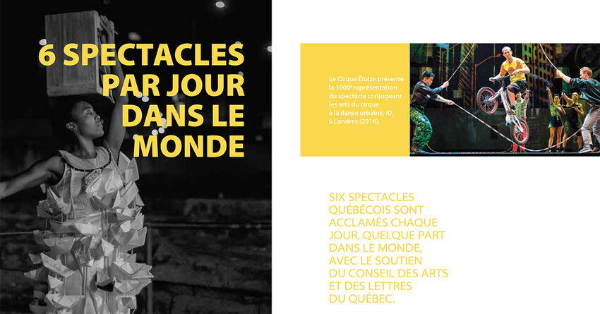Le Conseil des arts et des lettres du Québec joue un rôle de premier plan dans le déploiement de l’excellence artistique québécoise à l’international. Les échos hors frontières d’un artiste, d’un écrivain ou d’une compagnie qui s’illustre en tournée, lors d’expositions ou en recevant un prix prestigieux se sont multipliés, au cours des dernières années, et sont maintenant observés dans toutes les disciplines. Cette publication fait état du succès de nos artistes et organismes québécois à l'international et des actions menées par le CALQ afin de propulser leur rayonnement.