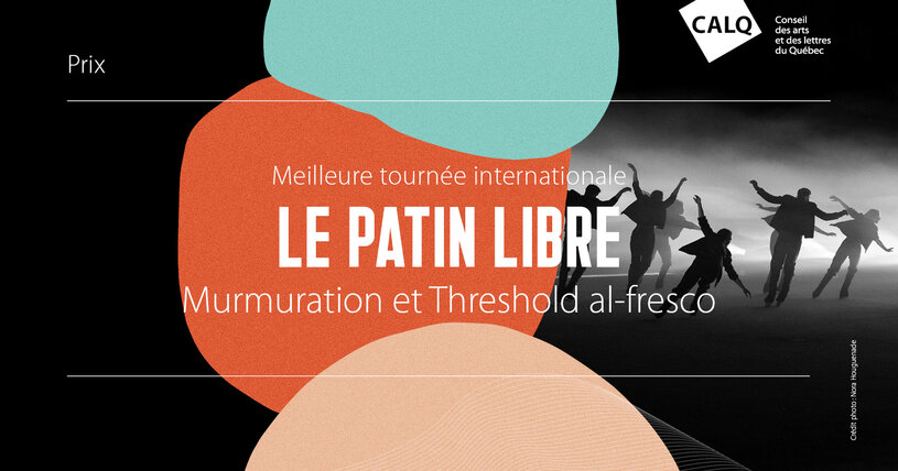 Le Prix du CALQ pour la meilleure tournée internationale est remis à la compagnie Le Patin Libre pour sa tournée des spectacles Murmuration et Threshold al-fresco.