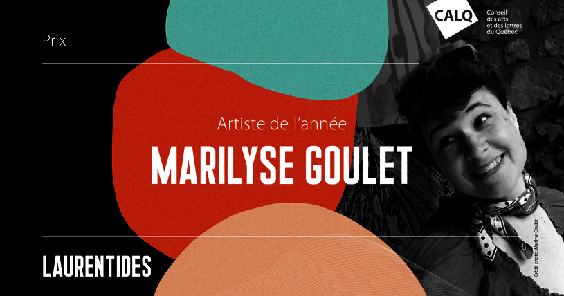 Le Conseil des arts et des lettres du Québec, en collaboration avec Culture Laurentides, est heureux de décerner le Prix du CALQ – Artiste de l’année dans les Laurentides à l’artiste en arts visuels Marilyse Goulet. Ce prix, assorti d’un montant de 10 000 $, lui a été remis par Lorraine Tardif, secrétaire générale et directrice du bureau de la présidence générale au Conseil des arts et des lettres du Québec, lors de la soirée des Grands prix de la culture des Laurentides 2023, organisée par Culture Laurentides au Théâtre Le Patriote à Sainte-Agathe-des-Monts.