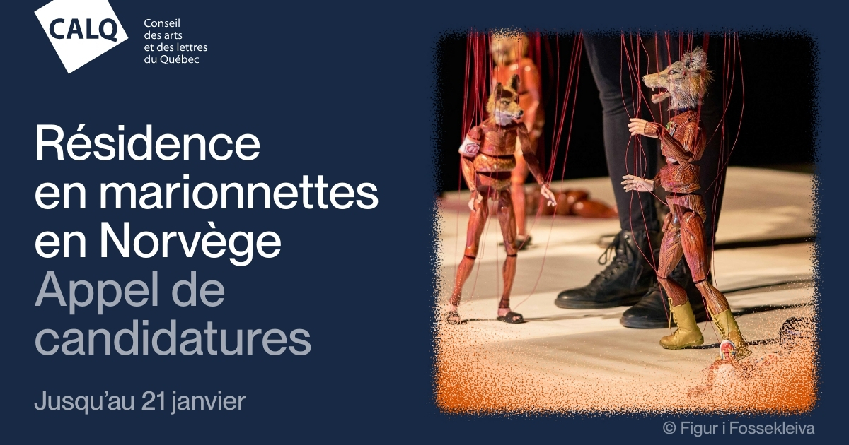 Earlier this winter, the CALQ entered into a partnership agreement with a Norwegian organization, the Fossekleiva kultursenter This link will open in a new window, to implement a puppet arts residency for Québec artists.