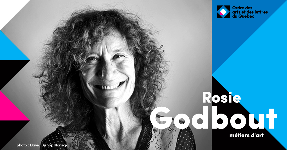 Rosie Godbout received the insignia of the Ordre des arts et des lettres du Québec, a prestigious distinction bestowed to personalities whose exemplary achievements reflect the artistic and literary development of Quebec.