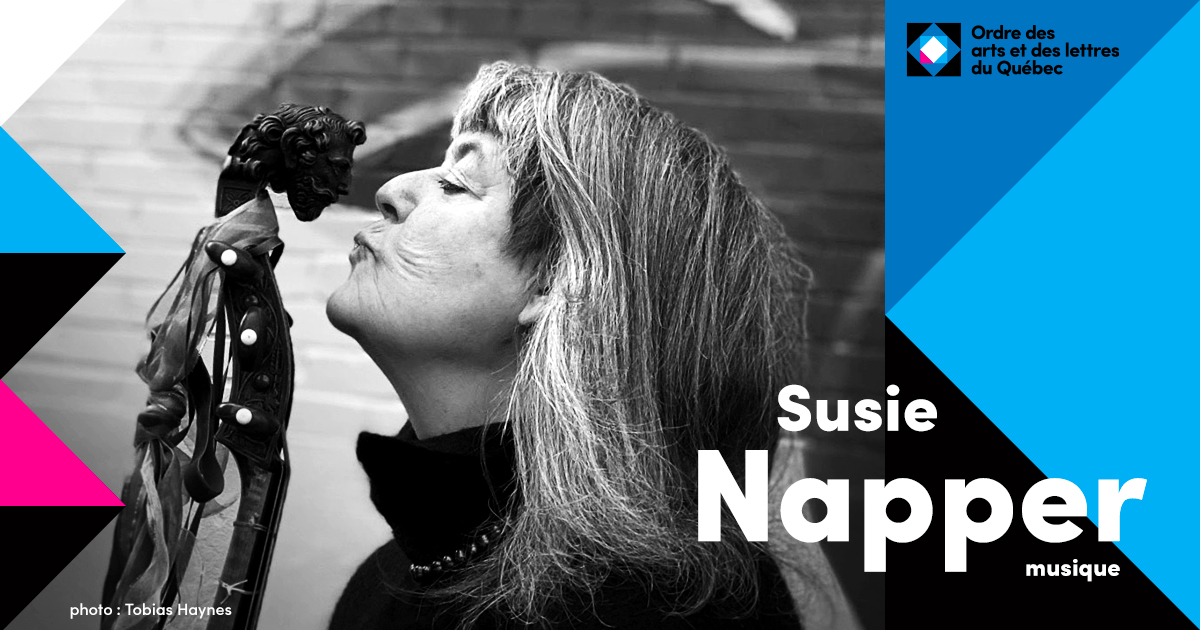Susie Napper received the insignia of the Ordre des arts et des lettres du Québec, a prestigious distinction bestowed to personalities whose exemplary achievements reflect the artistic and literary development of Quebec.