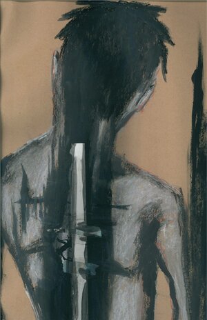 Since then, he has blended newsprint collage, pastels, and acrylics in his figurative canvasses.